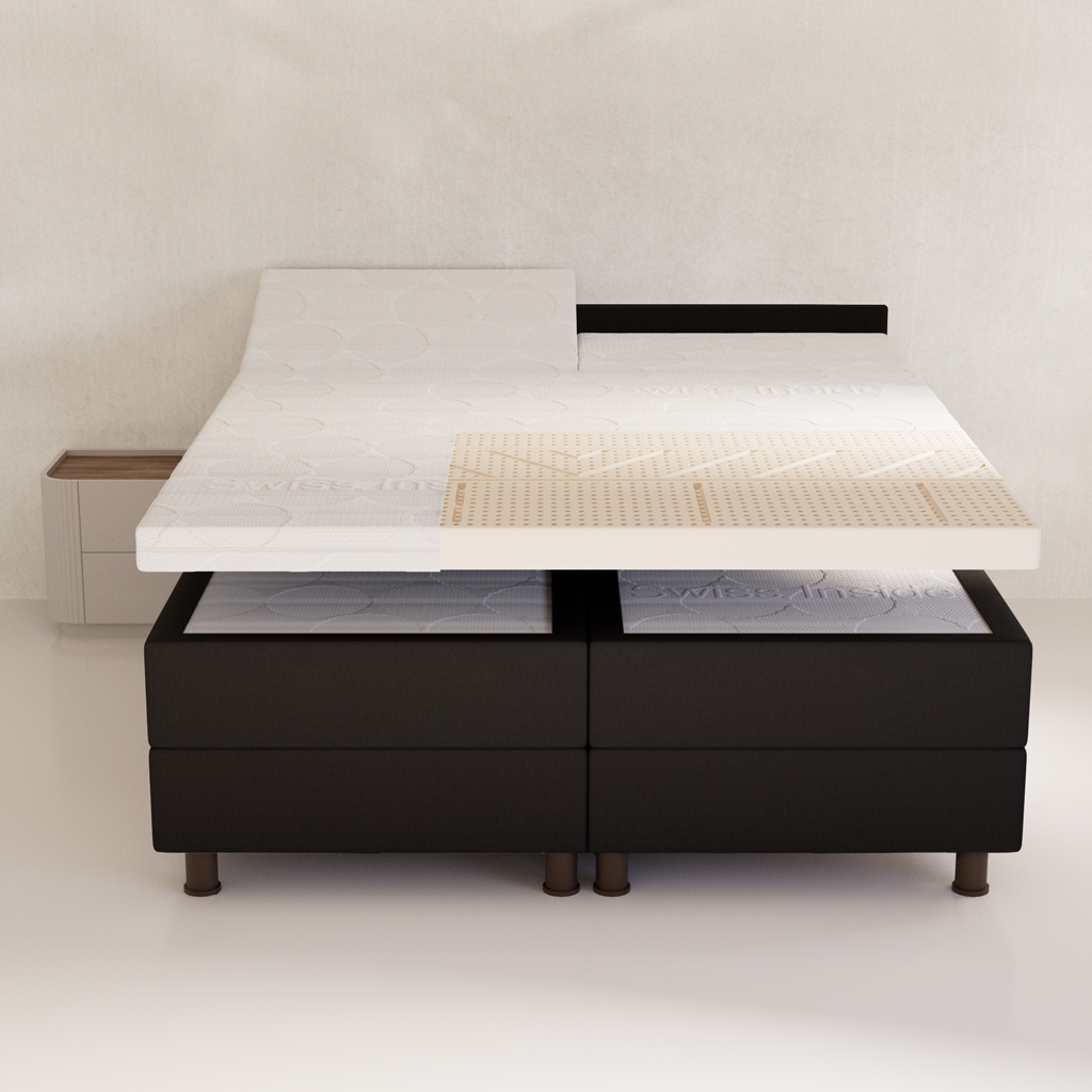 Dit topdekmatras met split is samengesteld uit grondstoffen van het topsegment. De Talalay® Latex kern geeft een uitnodigend zacht gevoel, flexibel en ventilerend. De buitenhoes is vervaardigd van een dubbeldoek AirVent-fresh met antibacteriële werking. De hoes zorgt voor een droge slaapomgeving dankzij het vochttransporterende- en het ademende vermogen.